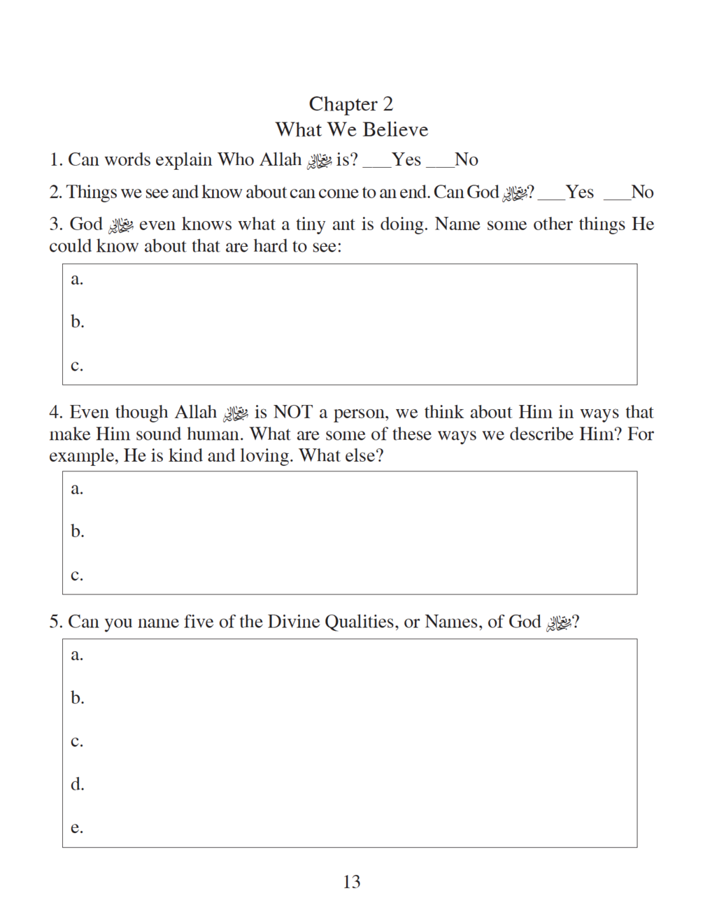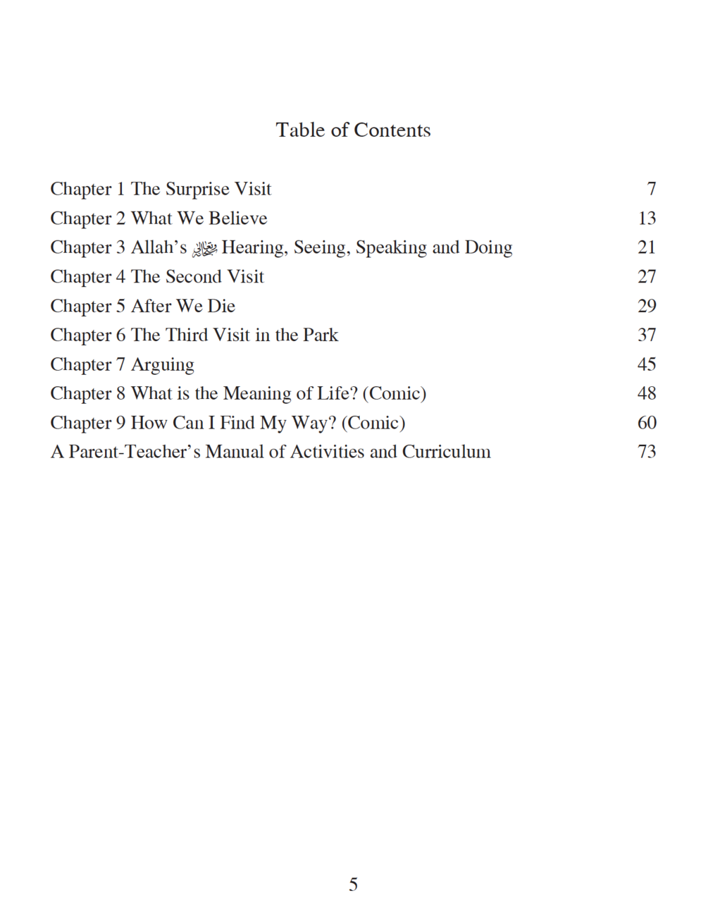 Also, he suggested that children enjoy such magical ideas as “time travel.” It was therefore decided that in the Book of Belief, the Imam would make an imaginary visit to the children in order to answer their questions. It is for this reason that we have included the Imam in such a fashion, using such a metaphor for his timeless message coming to our children.