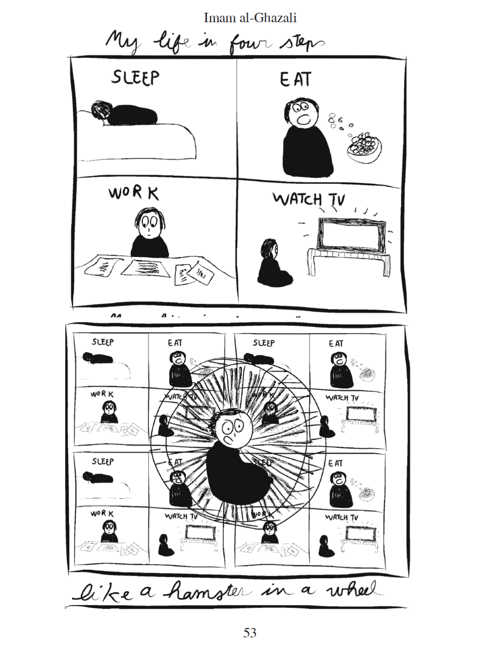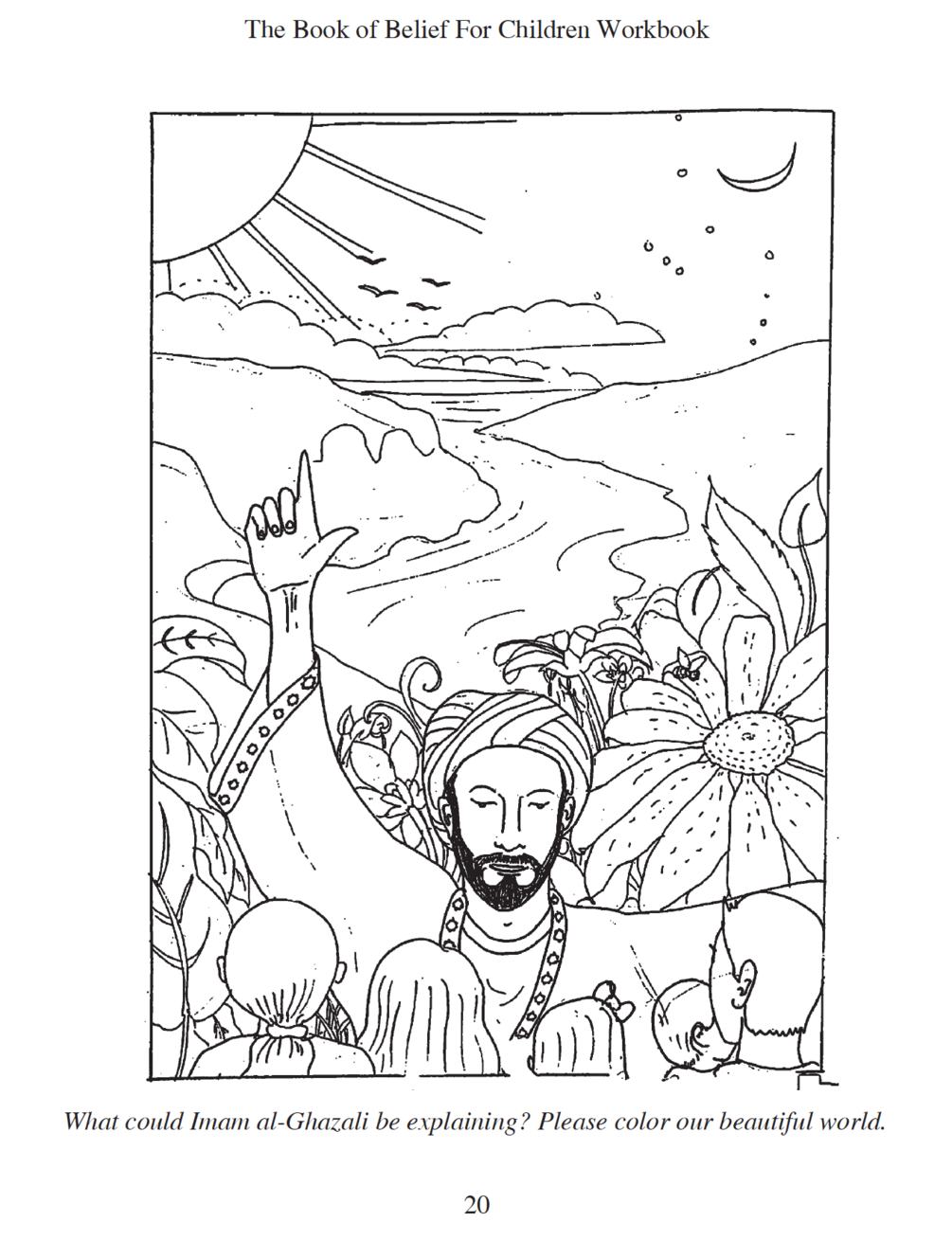In the Book of Knowledge, we were able to create stories, which could best explain Imam al-Ghazali’s ideas to children. In Book Two however, he presents very profound concepts about belief and the afterlife. A friend in Abu Dhabi suggested that young Muslims love heroic figures, and that Imam al-Ghazali would make an excellent addition to the great personages in the Islamic world for young people to admire.